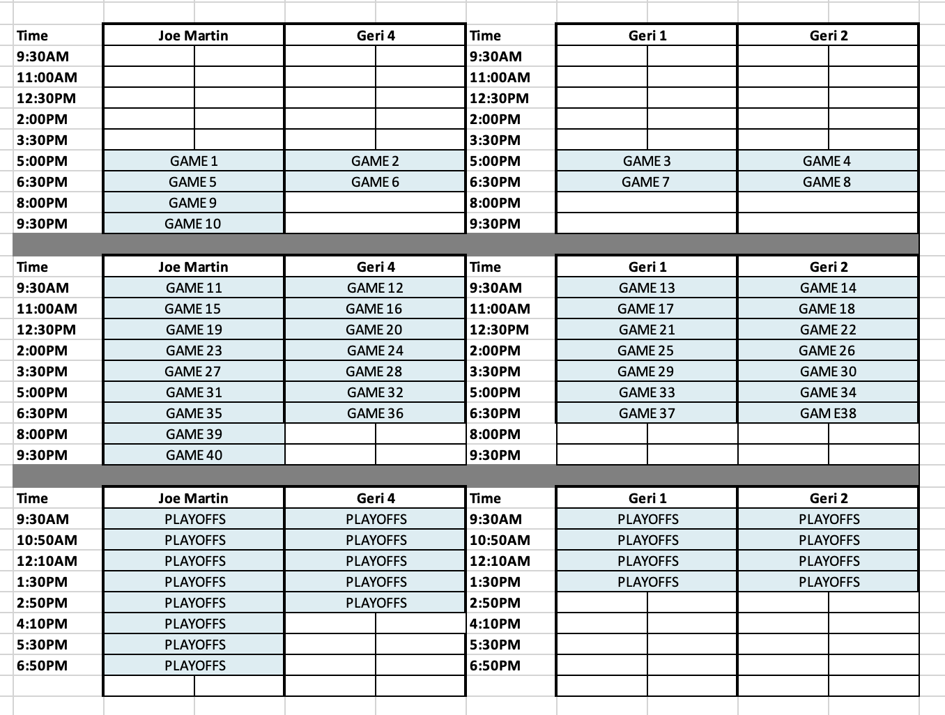 More detailed reports can be found on the divisions page.